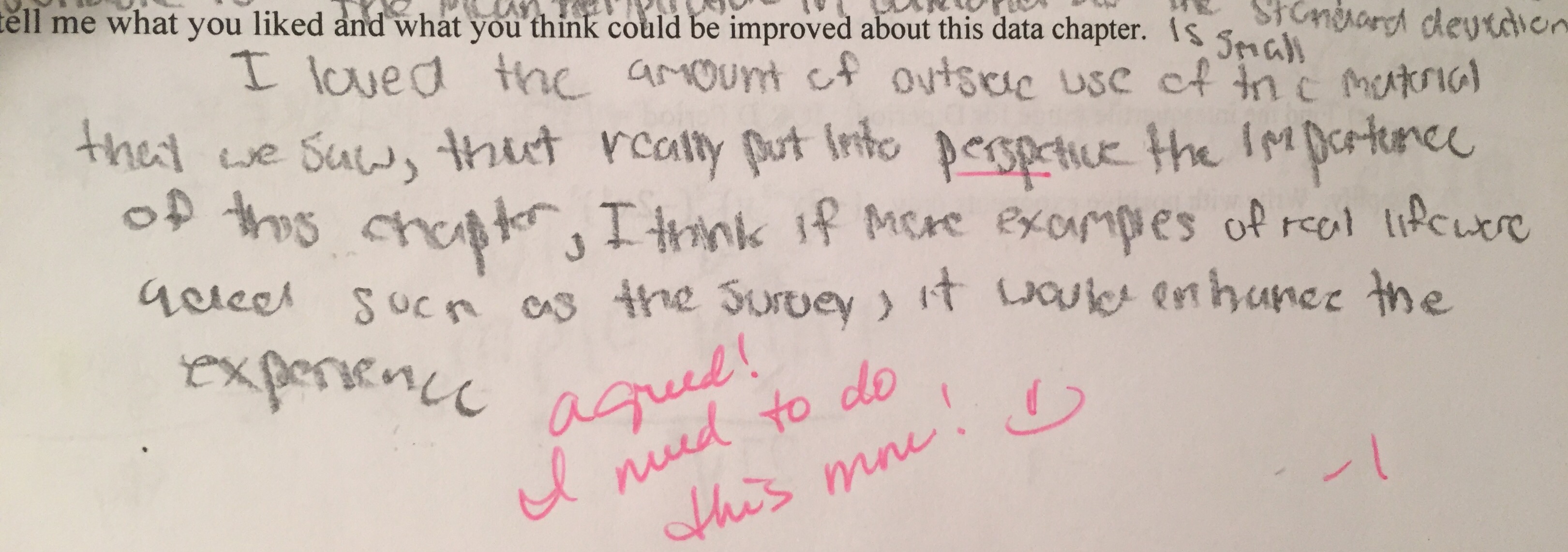 Student Survey Question on Assessment